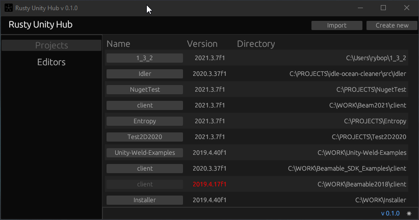 Very simple alternative for Unity Hub. Rust pet project.